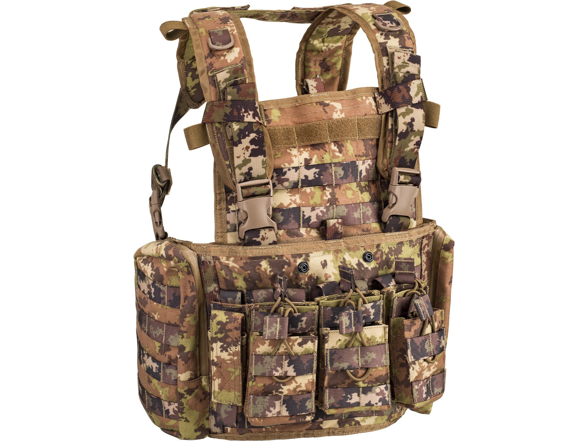 Questo chest rig risulta essere molto confortevole e versatile grazie alla sua configurazione e all’elevata presenza di fasce MOLLE.